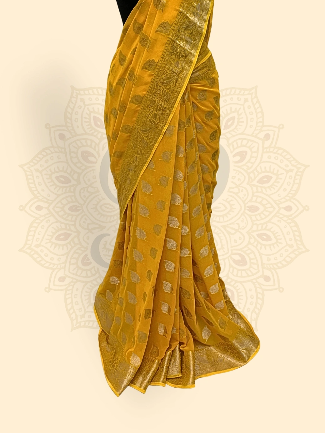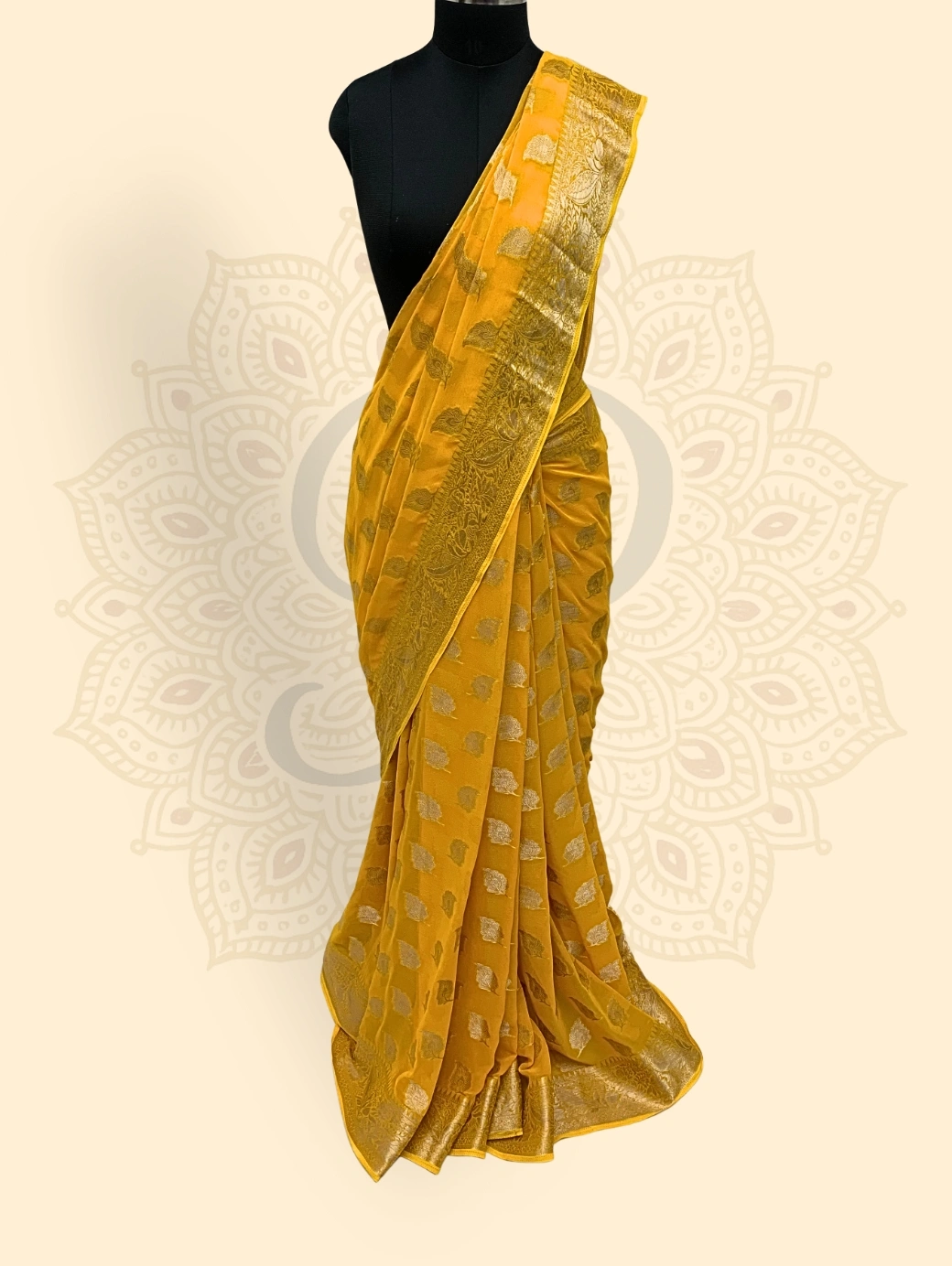 Be the first to review “Georgette— Sunflower Choti Buti Zari Work (Yellow)”