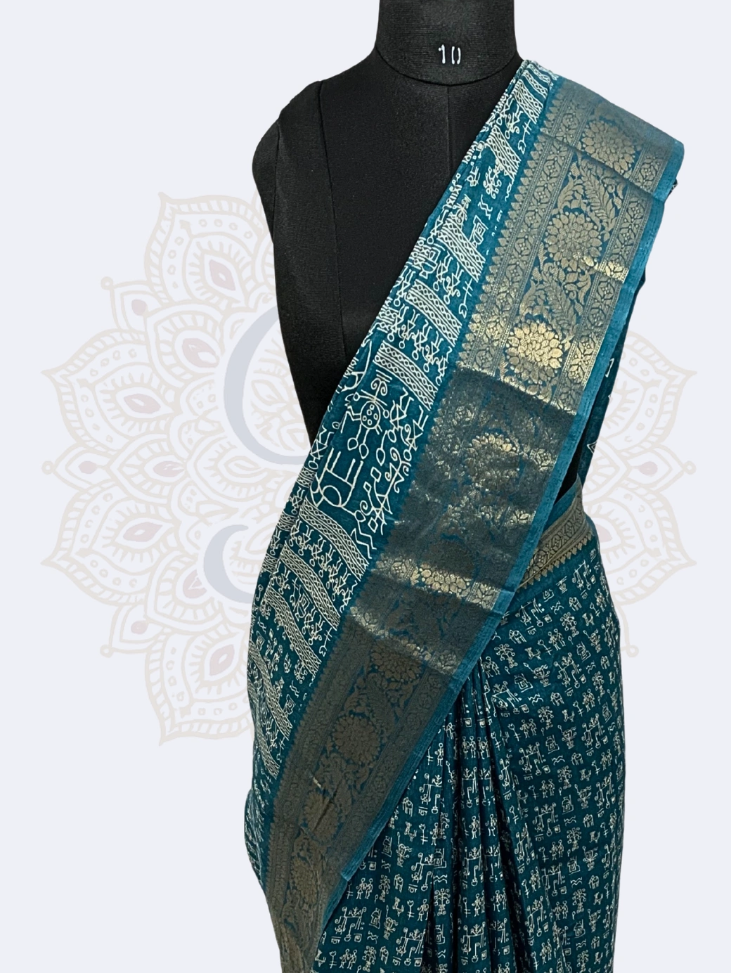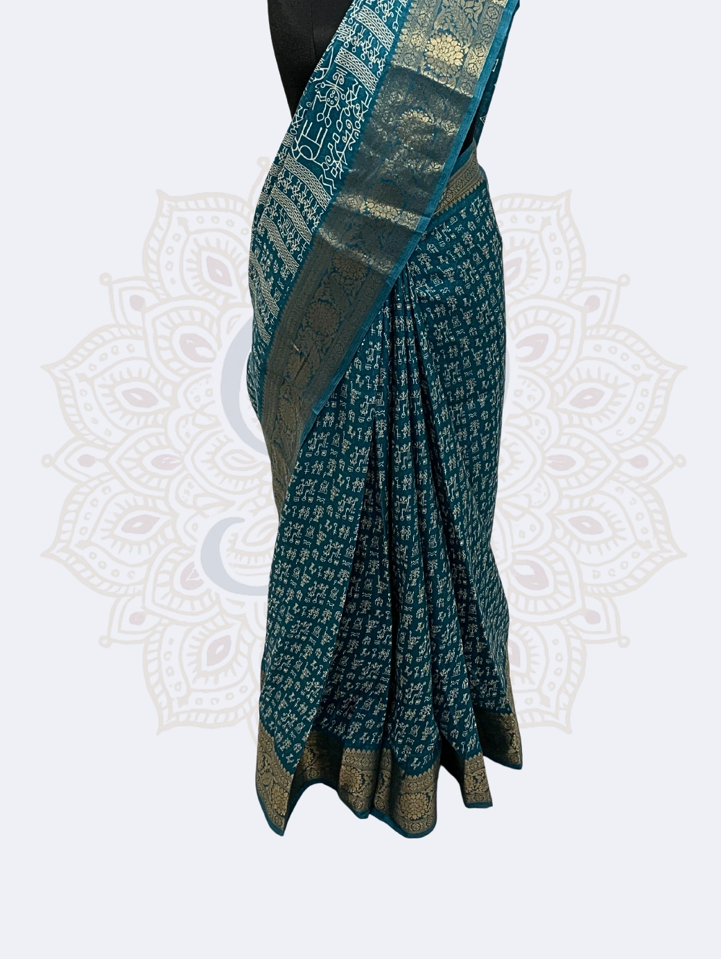 Warli Art (Cotton Silk, Zari Border ) — Blue